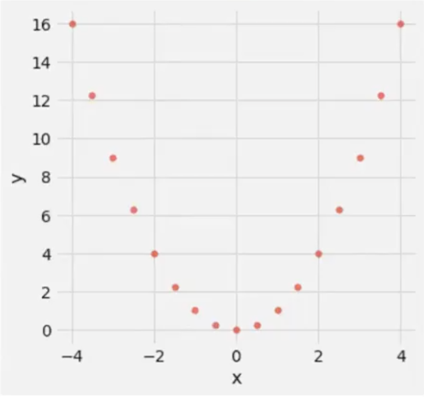 x의 값을 알면 y는 정확하게 x^2이기 때문에 완벽하게 y값을 예측할 수 있습니다.
