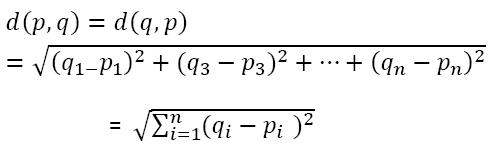 여기서 가깝다의 정의는, 피타고라스 정리에서 distance를 구하는 방법을 n차원으로 확장한 형식입니다.