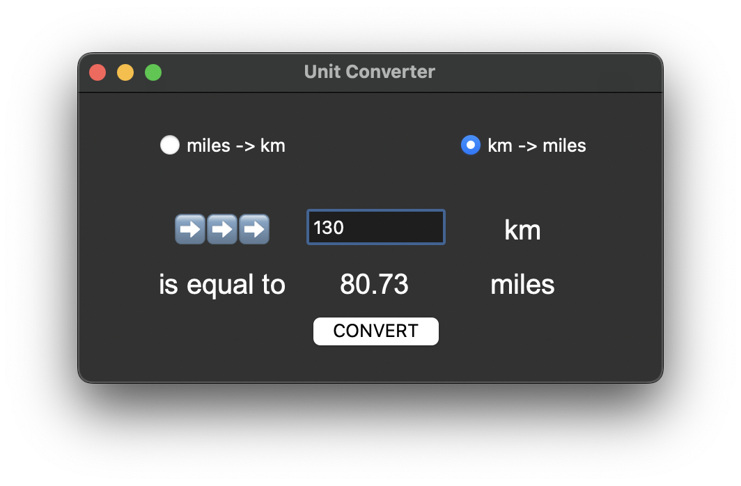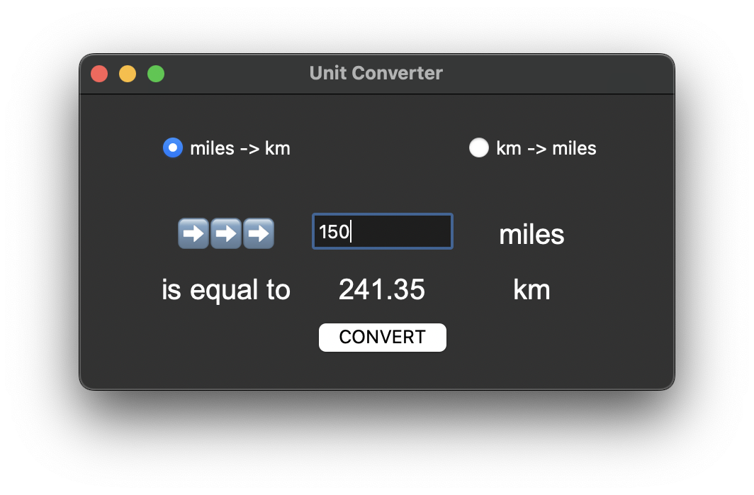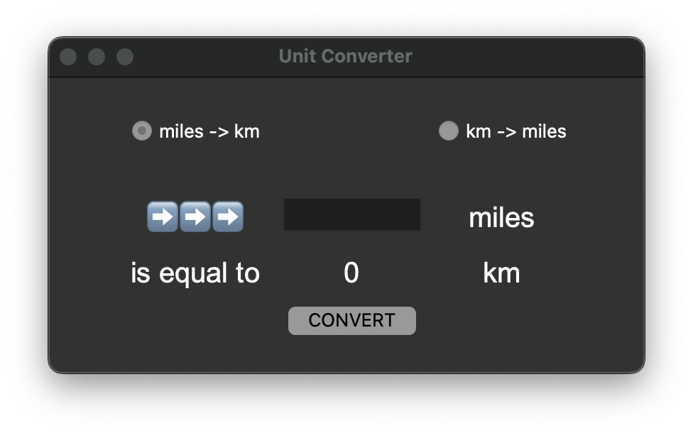 km_button = Radiobutton(text="km -> miles", value="km", variable=mode_select, command=lambda: change_mode("km"))