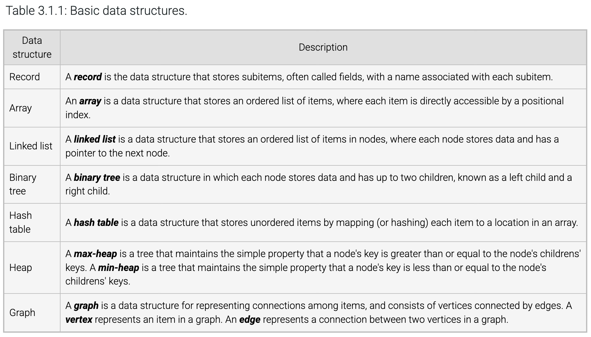 Array, Linked list, Hash table are some examples of basic data structures.