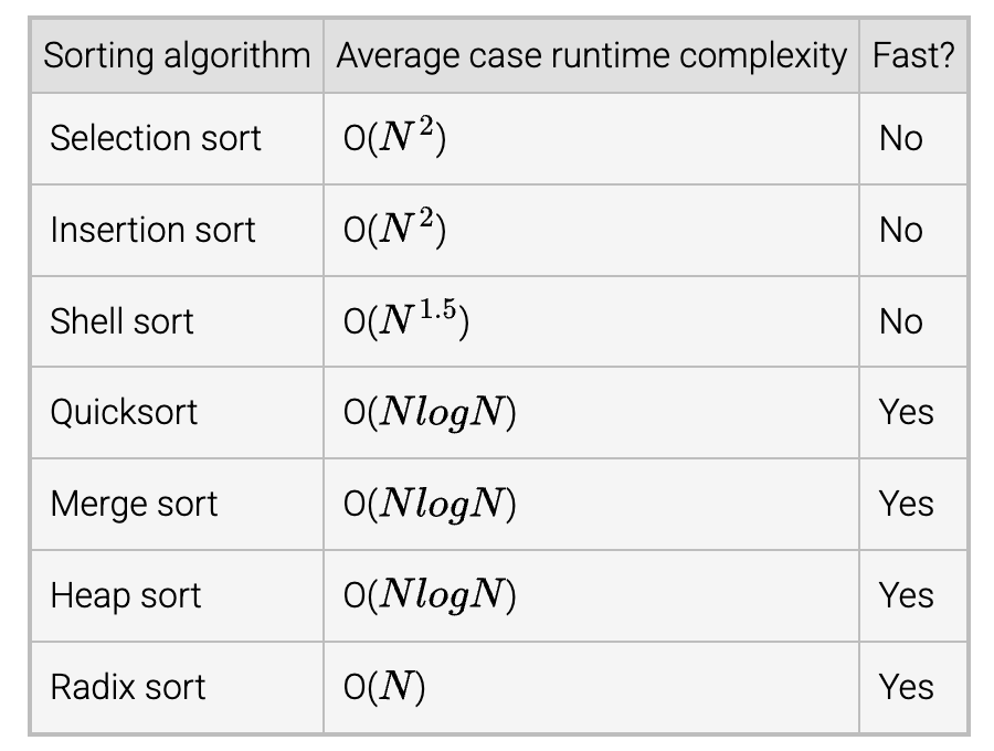 Chan Lee 2025. 3. 19. 02:38A fast sorting algorithm is a sorting algorithm that has an average runtime complexity of O(n log n) or better.