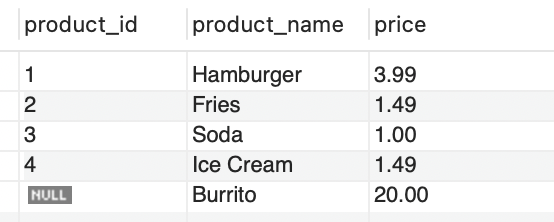 Now let's try some other column to be Null and product_name not null, and check if that works.