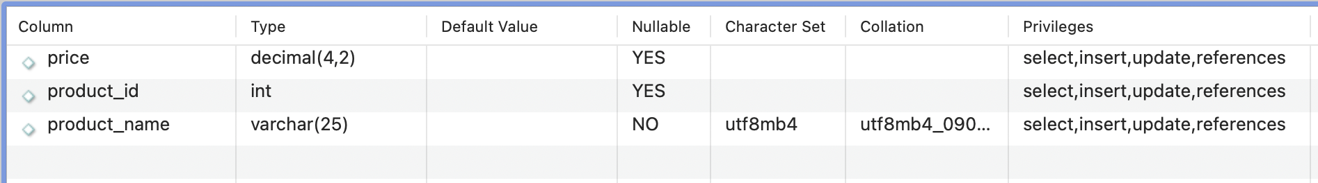 Notice that product_id column is bold font in MySQL Workbench UI.