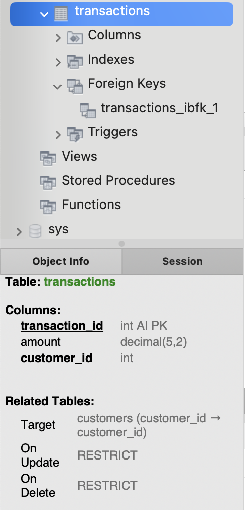 transactions table references customer_id FOREIGN KEY from customers table to select a specific customer_id, because customer_id in customers table is a PRIMARY KEY, meaning that there must be no duplicates in customer_id column.