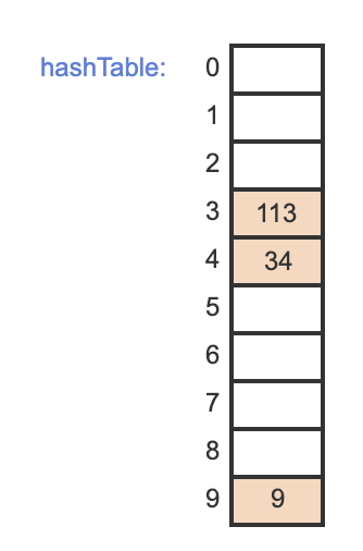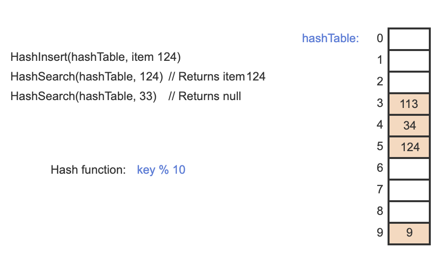 Since bucket 5 was empty, item 124 is inserted into bucket 5.