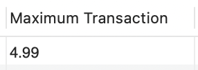SELECT MAX(amount) AS "Maximum Transaction"
