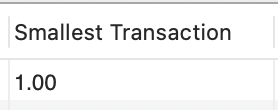 SELECT MIN(amount) AS "Smallest Transaction"