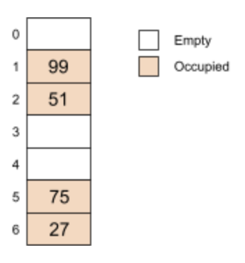 3) At what index does 99 reside in the resized table?