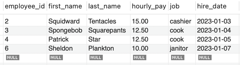 Now, let's try to find every employee that is either a cook OR a cashier.