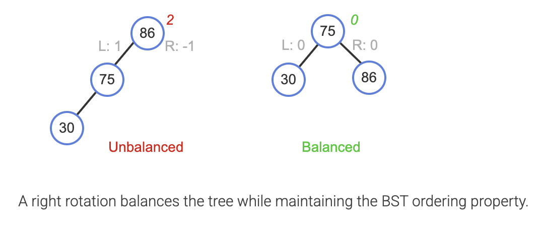 *Rotation is said to be done at a node. Ex. Above, the right rotation is done at node 86.