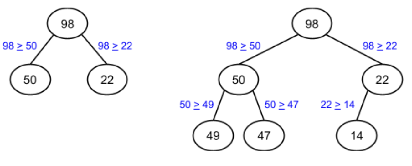 주의해야 할 점은 규칙은 단순히 부모 노드가 자식 노드보다 커야한다 뿐입니다.