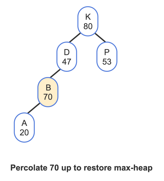 - A treap insert initially inserts a node as in a BST using the main key, then assigns a random priority to the node, and percolates the node up until the heap property is not violated. In a heap, a node is moved up via a wap with the node's parent. In a treap, a node is moved up via a rotation at the parent. Unlike a swap, a rotation maintains the BST property.