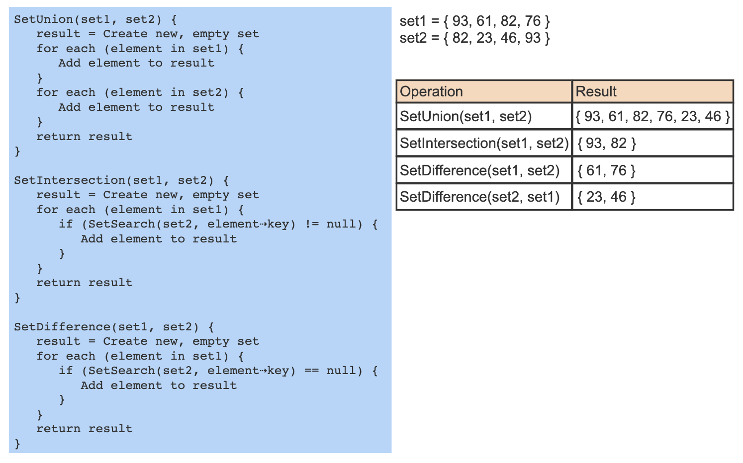 Union, Intersection, and Difference