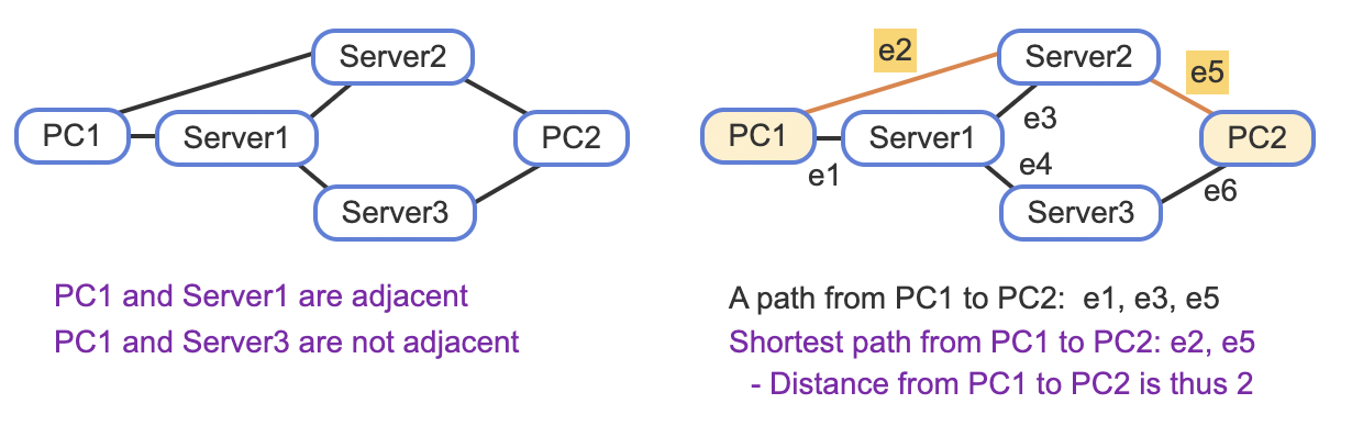 - The distance between two vertices is the number of edges on the shortest path between those vertices.