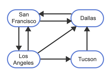 From above digraph, Tucson is adjacent to Los Angles; Dellas is adjacent to Tucson.