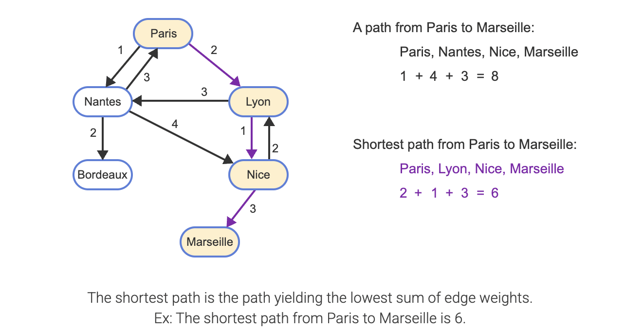 In a weighted graph, the path length is the sum of the edge weights in the path.