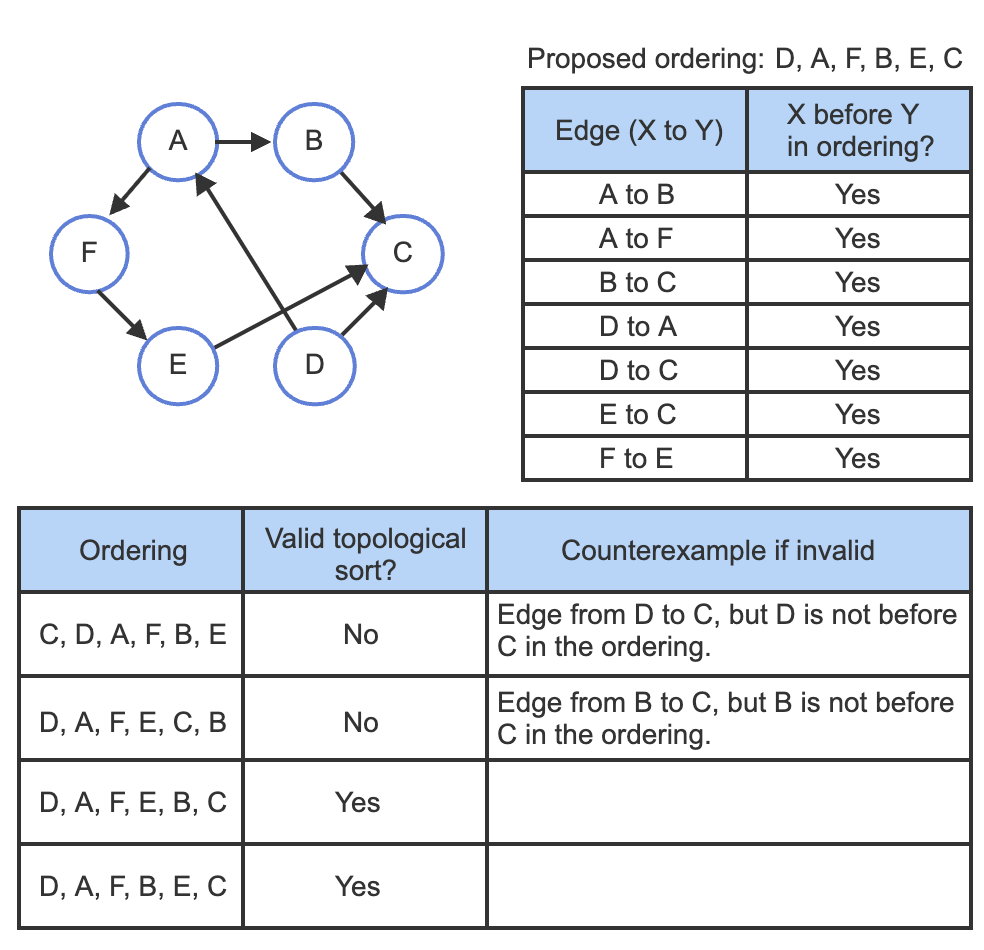 Chan Lee 2025. 5. 28. 05:02A topological sort of a directed, acyclic graph produces a list of graph's vertices such that for every edge from a vertex X to a vertex Y, X comes before Y in the list.