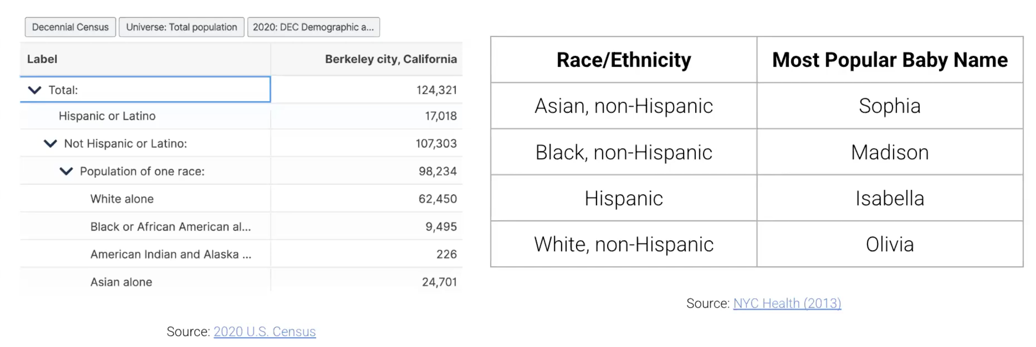 There is a difference in preference in their baby names in each race. Also, there is a difference in demographics for differenct cities. (more than 30% in SF, less than 20% in NY)