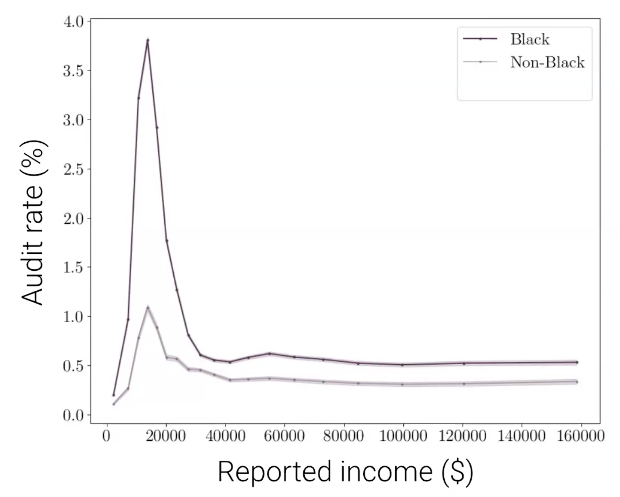 Taxpayers with a higher estimated probability of identifying as Black were more likely to be audited.