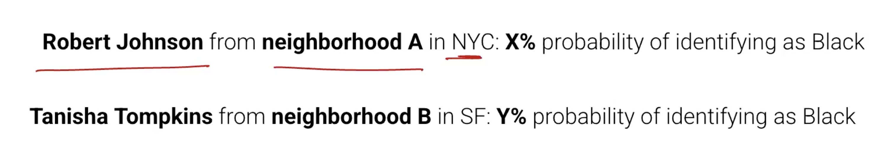 Drawing on external datasets, researchers estimated the probability that a taxpayer with a particular location + name identifies as Black.