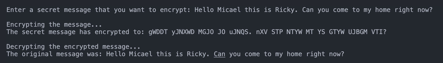 cout << "The secret message has encrypted to: " << message_input << endl;