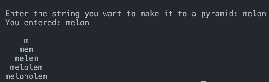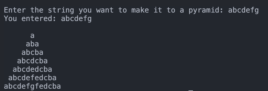 사용자로부터 문자열을 입력 받고, 이를 피라미드 형태로 출력하는 것입니다.
