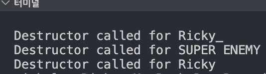 Destructor (소멸자)가 Player의 reference를 인자로 받는 another_hero 함수로 인해서 생성된 ricky2 객체에서 1번,