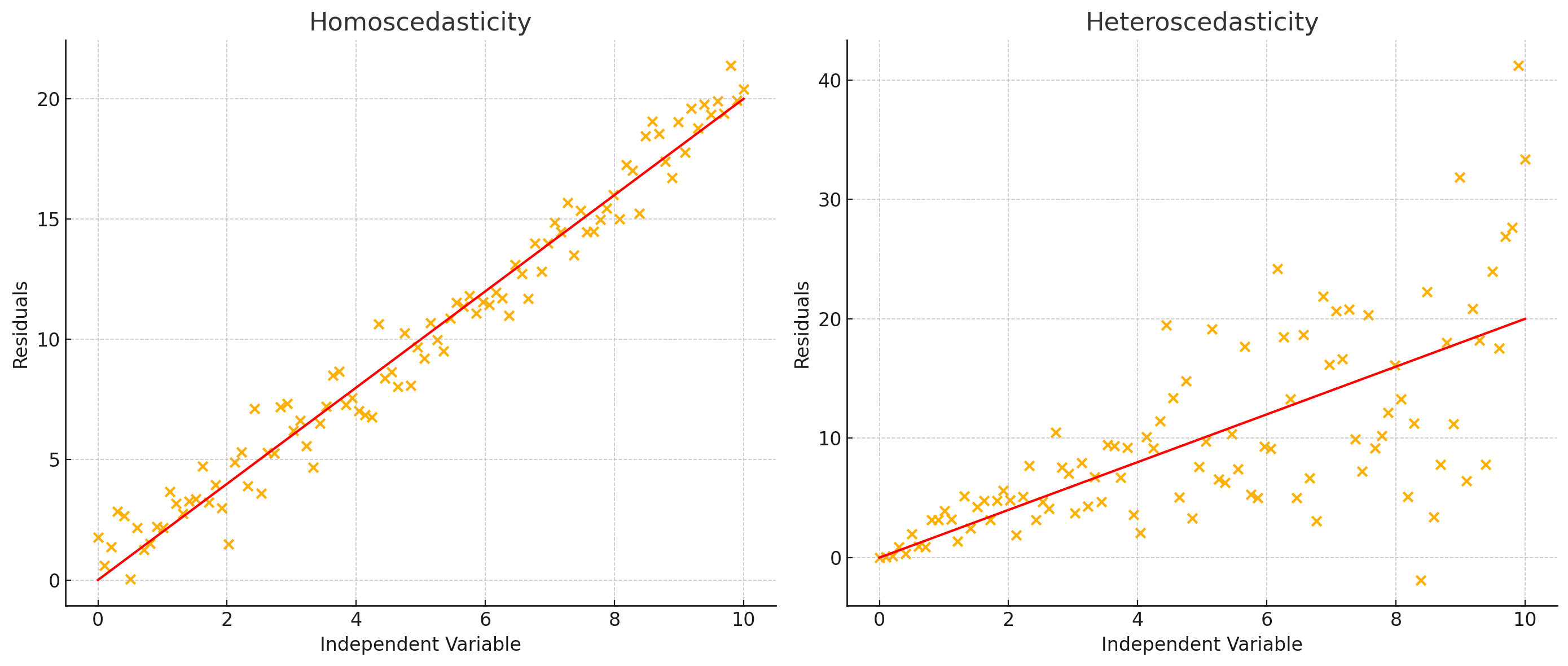 Homoscdasticity, 등분산성은 데이터의 Error Term, 입실론의 분산이 동일하다는 가정입니다.